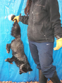 Below is a graphic picture of the foxes' post mortem. He was a beautiful black fox but it was just too dangerous to let him roam around here.